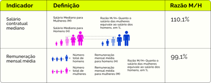 Os números públicos reforçam esse compromisso. No Relatório de Transparência e Igualdade Salarial (2º semestre de 2025), a empresa registra que o salário contratual mediano das mulheres equivale a 110,1% do recebido pelos homens. Ou seja, no valor-base de registro em carteira, as mulheres ganham, em média, 10% a mais que seus colegas.