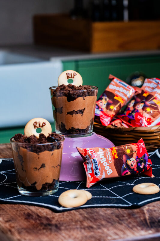 Boolinho Fantasma, Mousse de Chocolate “Cemitério” e Boolinho de Múmia