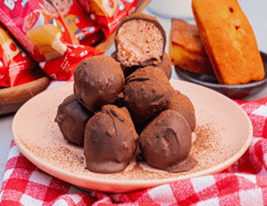 Para a sobremesa, que tal usar o Bolinho Morango da Seven Boys, com massa no sabor baunilha e recheio cremoso da fruta, para um doce criativo e delicioso? Essa é a proposta do Bombom de Bolinho de Morango. Os bolinhos esfarelados são misturados com cream cheese, formando uma massa macia e moldável, para fazer pequenas trufas. Depois de modeladas e resfriadas, as bolinhas são mergulhadas em chocolate derretido, criando uma casquinha irresistível. É uma receita que une praticidade e sabor, com um toque de carinho em cada etapa.