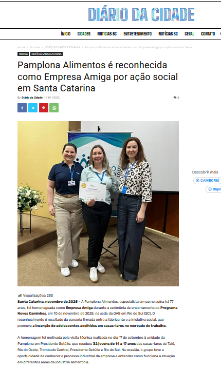Com 77 anos de tradição, a Pamplona Alimentos S.A., empresa familiar catarinense, atua com a missão de produzir e fornecer alimentos práticos, saborosos, saudáveis e de qualidade para os consumidores brasileiros. Está presente em 26 estados brasileiros e exporta cortes suínos para os principais países em que o Brasil é habilitado. Seu amplo portfólio conta com 14 linhas de produtos que englobam: carne suína temperada e in natura, linguiças defumadas e frescais, defumados, salames, copas, presuntaria e derivados, fatiados, queijos, entre outros. A companhia, que também é detentora das marcas Paraná, Rio Sul e Saudável, tem em seu quadro mais de 3.7 mil colaboradores e é reconhecida pelo investimento constante em inovação direcionado à modernização do parque fabril, otimização de processos industriais e manutenção dos padrões de qualidade de seus produtos.