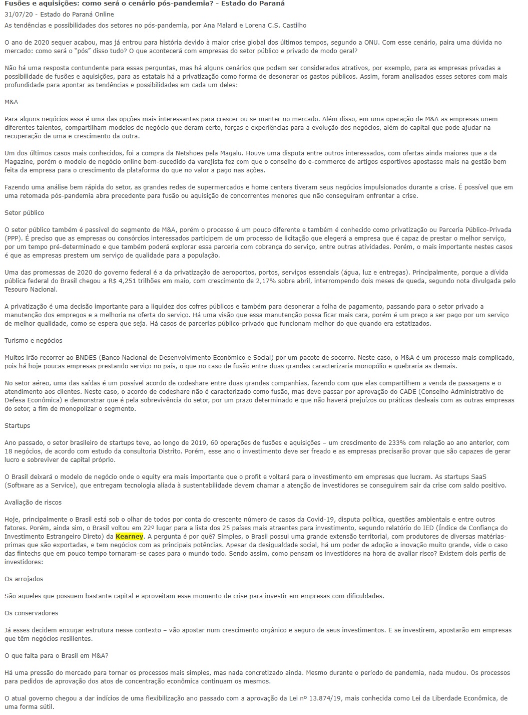Esta é a sala de imprensa da Kearney. Aqui você encontra press releases sobre as novidades da marca, além dos principais resultados em veículos de comunicação e canais de influenciadores conquistados pela equipe de assessoria de imprensa da Trama Comunicação.