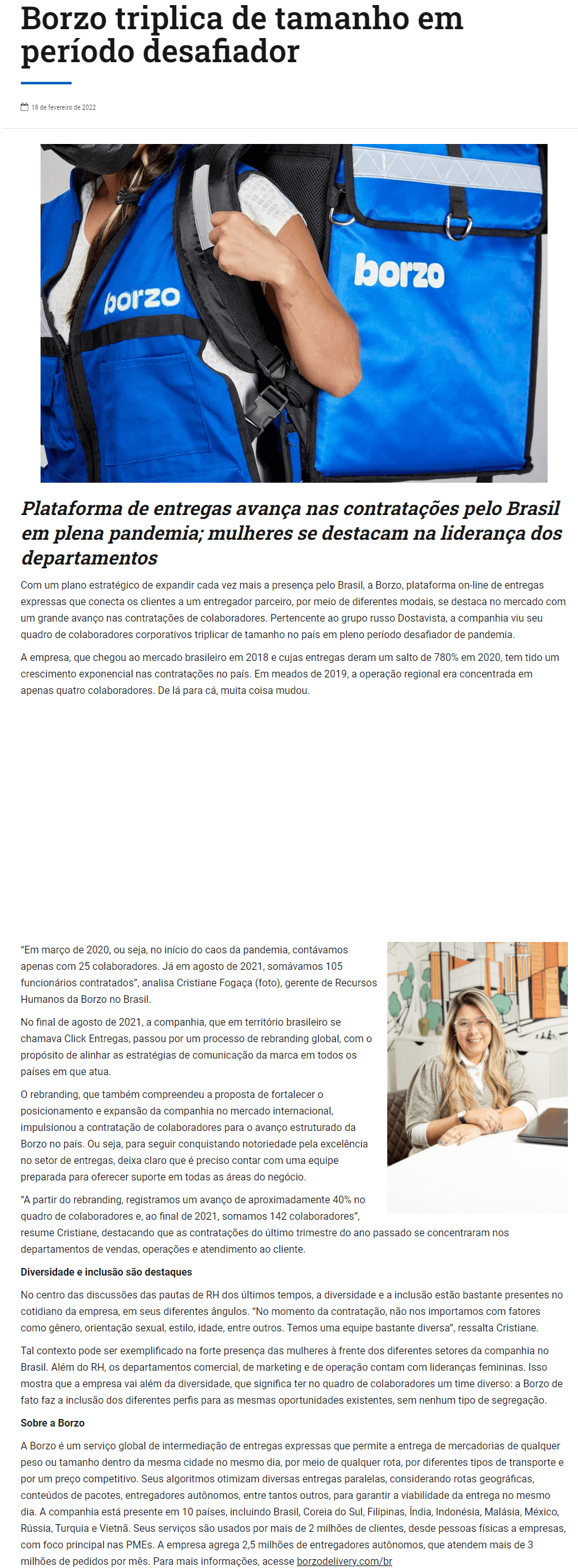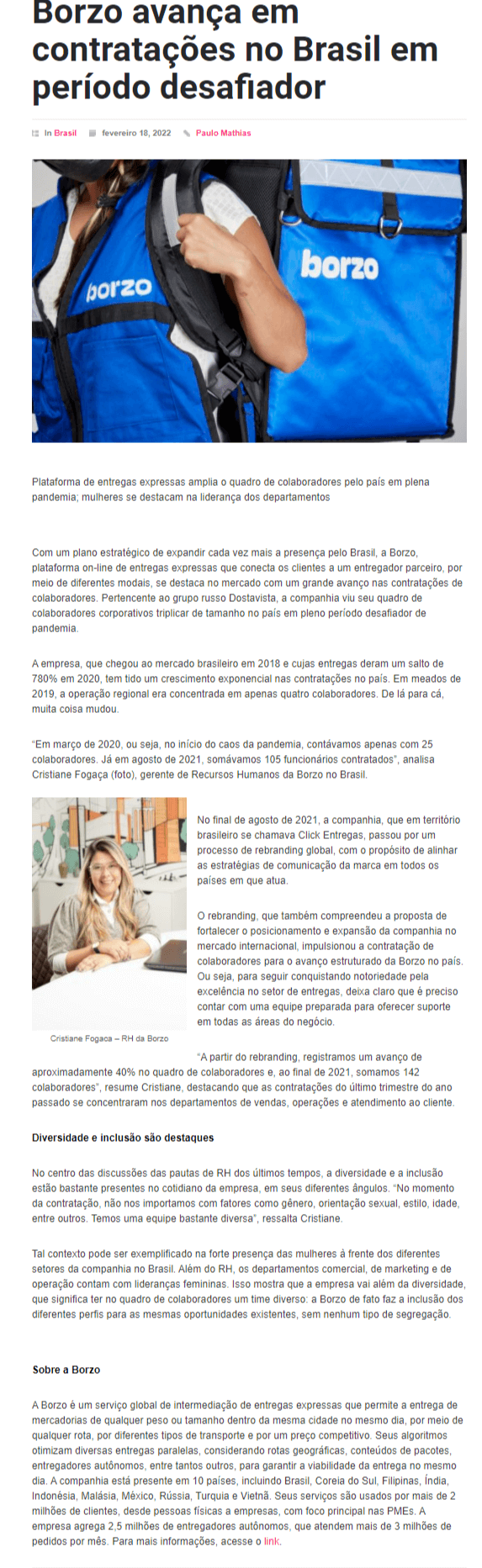 Esta é a sala de imprensa da Borzo. Aqui você encontra press releases sobre as novidades da marca, além dos principais resultados em veículos de comunicação e canais de influenciadores conquistados pela equipe de assessoria de imprensa da Trama Comunicação.
