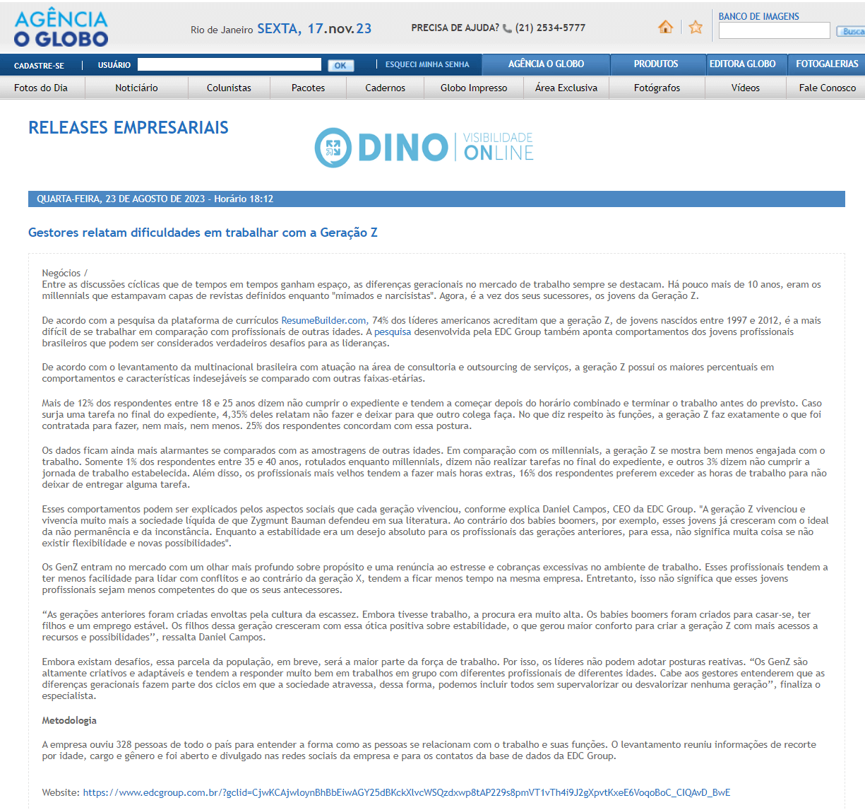 Esta é a sala de imprensa da EDC Group. Aqui você encontra press releases sobre as novidades da marca, além dos principais resultados em veículos de comunicação e canais de influenciadores conquistados pela equipe de assessoria de imprensa da Trama Comunicação.