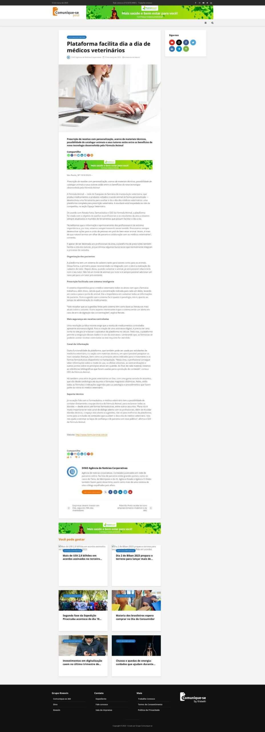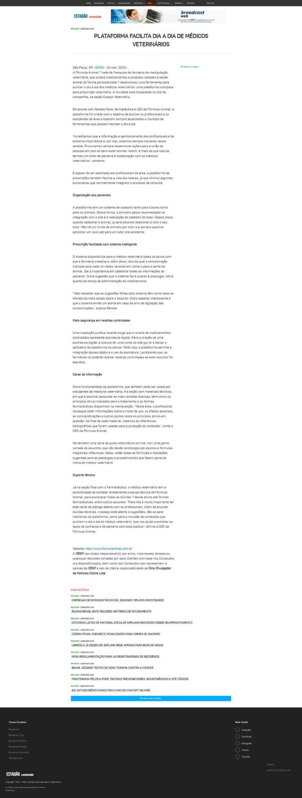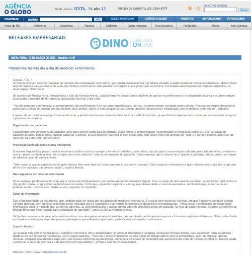 Esta é a sala de imprensa da Fórmula Animal. Aqui você encontra press releases, novidades e os principais resultados em veículos de comunicação e canais de influenciadores conquistados pela equipe de Assessoria de Imprensa do Grupo Trama Reputale.