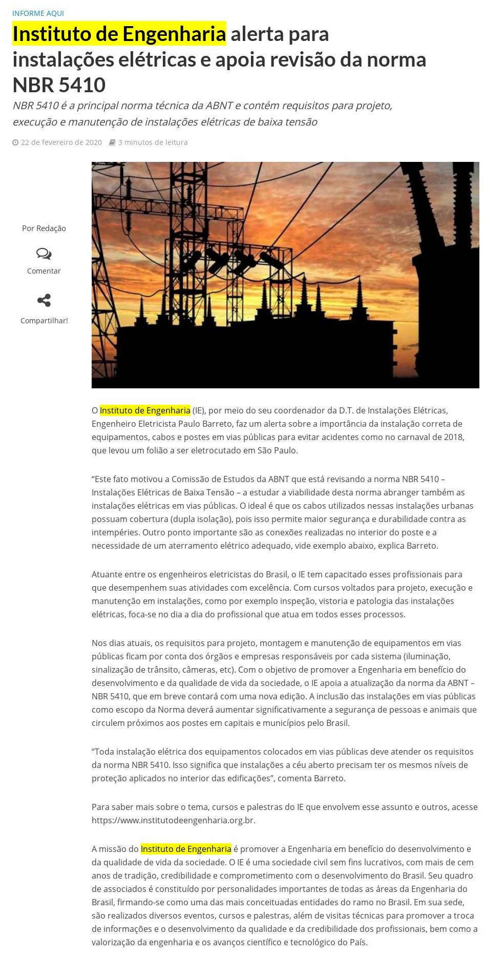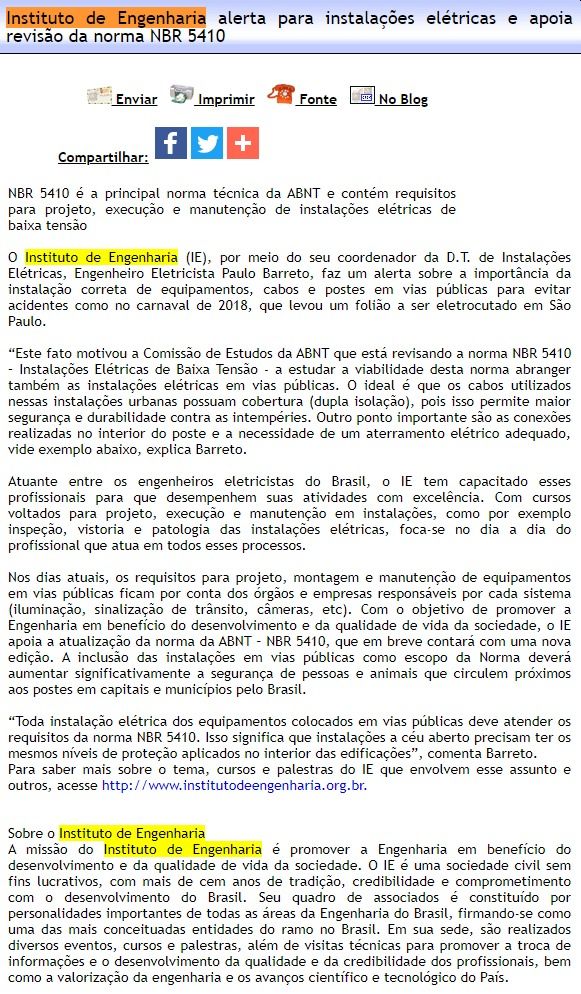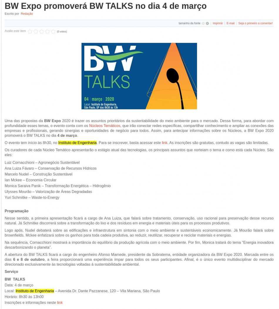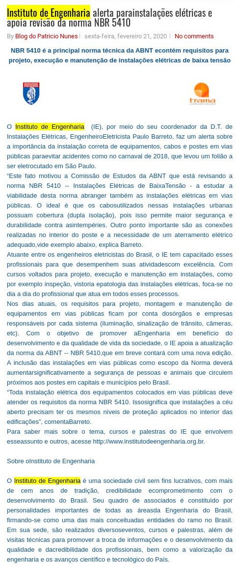 Esta é a sala de imprensa do Instituto de Engenharia. Aqui você encontra press releases sobre as novidades da marca, além dos principais resultados em veículos de comunicação e canais de influenciadores conquistados pela equipe de assessoria de imprensa da Trama Comunicação.