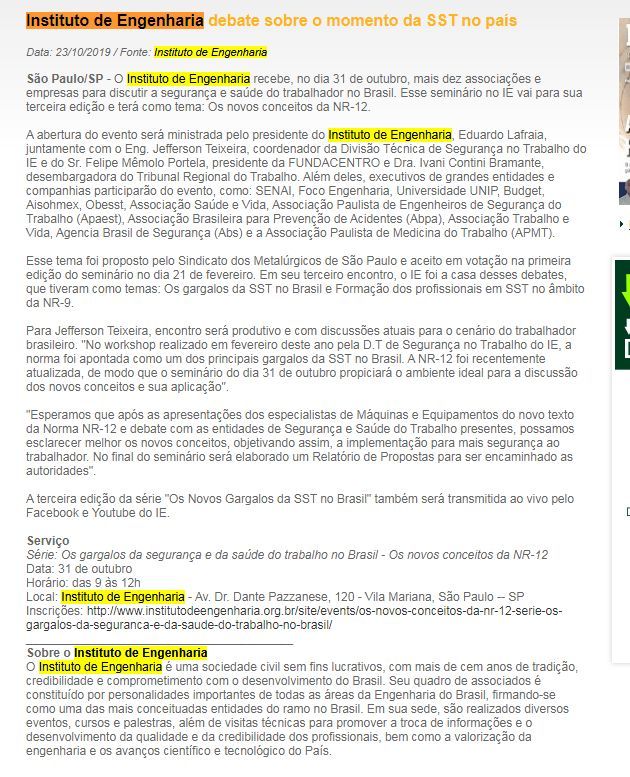 Esta é a sala de imprensa do Instituto de Engenharia. Aqui você encontra press releases sobre as novidades da marca, além dos principais resultados em veículos de comunicação e canais de influenciadores conquistados pela equipe de assessoria de imprensa da Trama Comunicação.