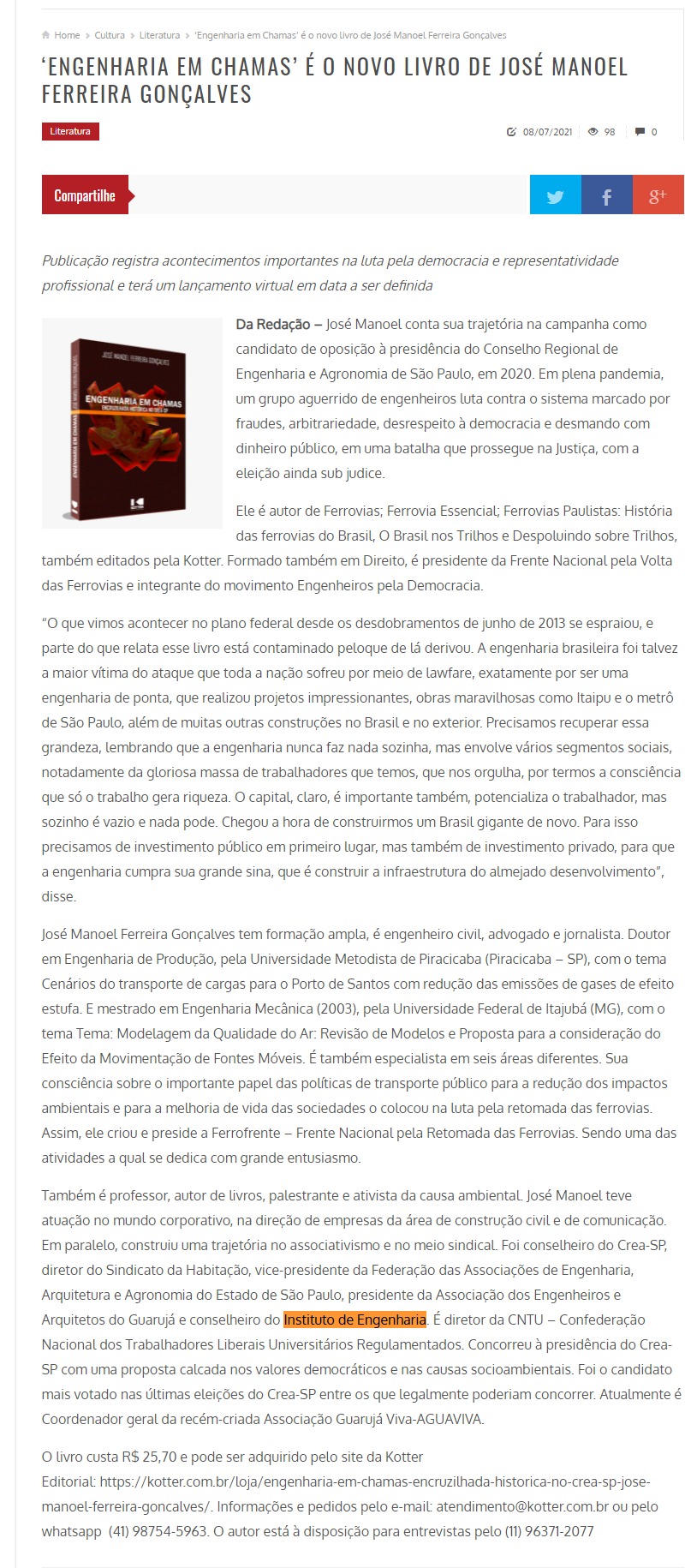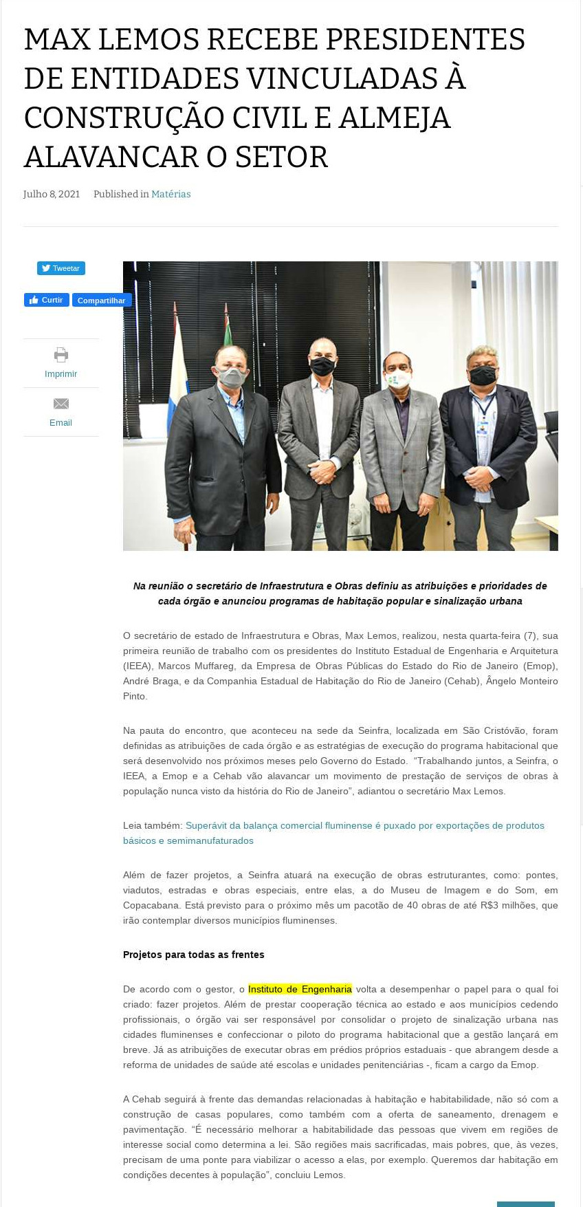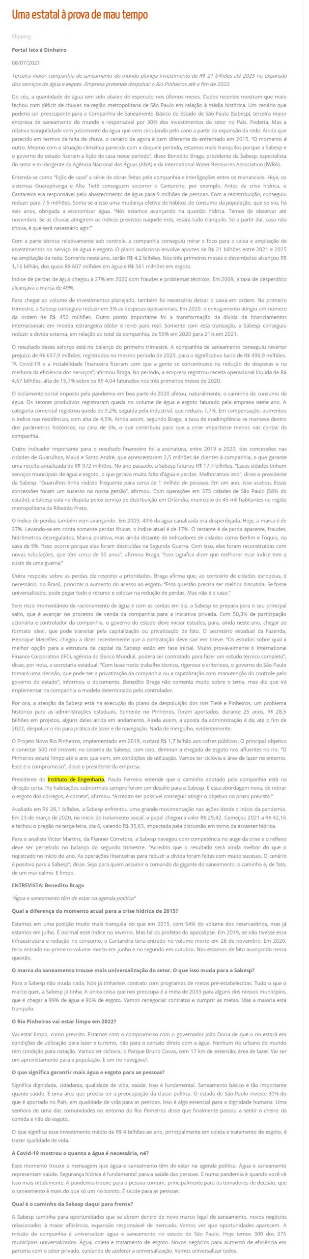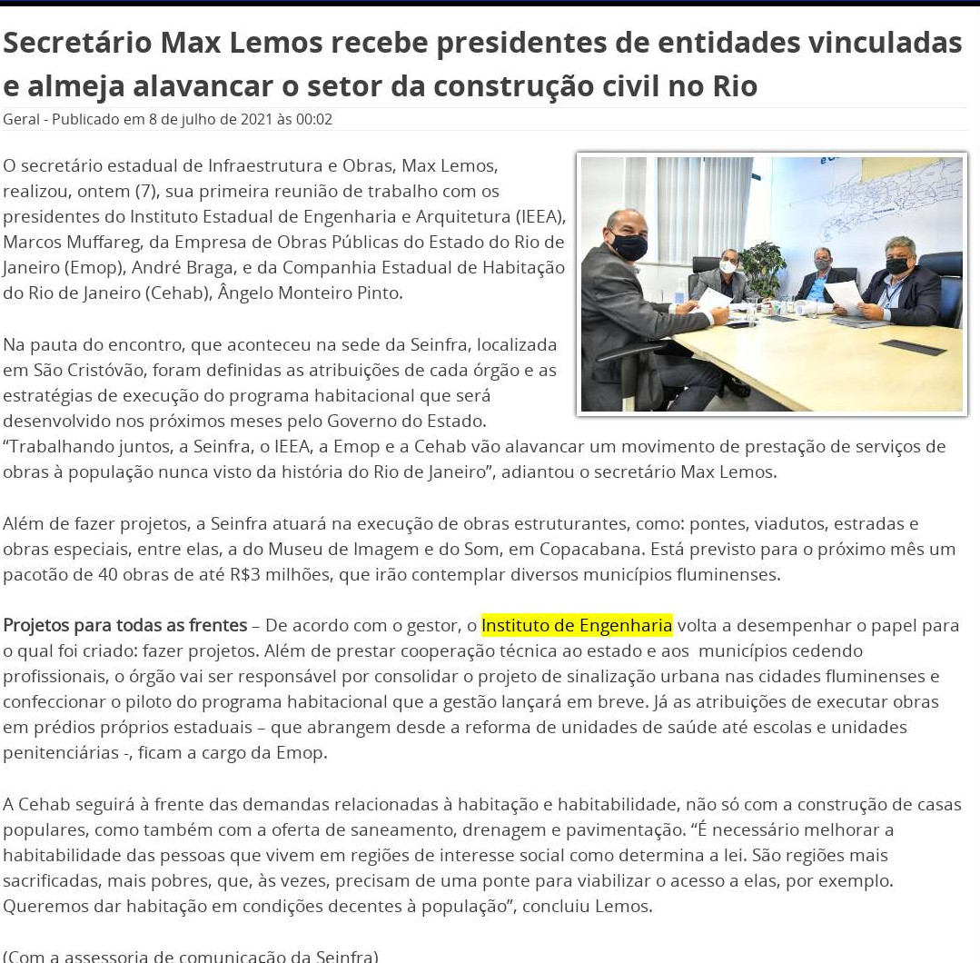 Esta é a sala de imprensa do Instituto de Engenharia. Aqui você encontra press releases sobre as novidades da marca, além dos principais resultados em veículos de comunicação e canais de influenciadores conquistados pela equipe de assessoria de imprensa da Trama Comunicação.