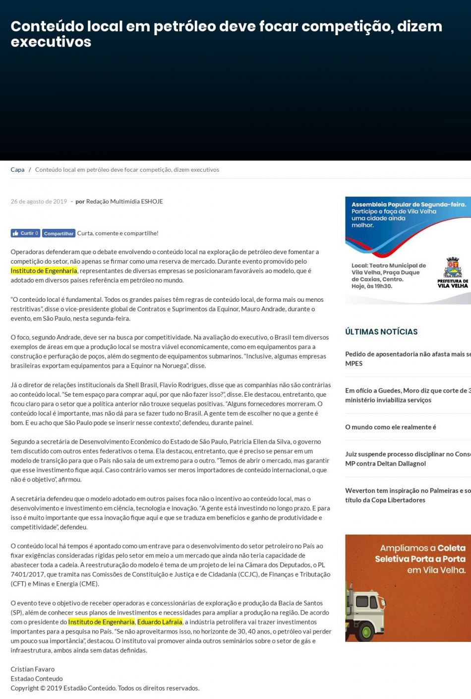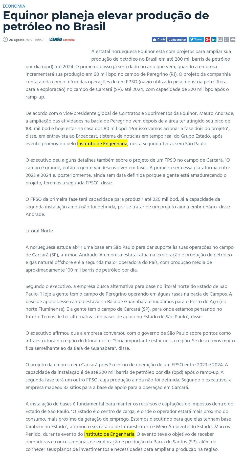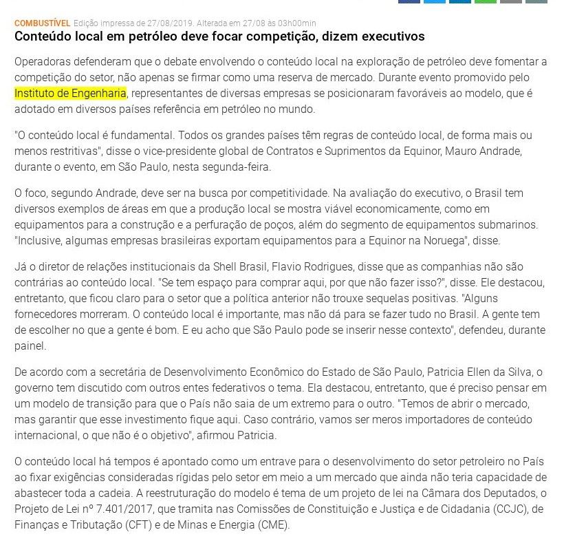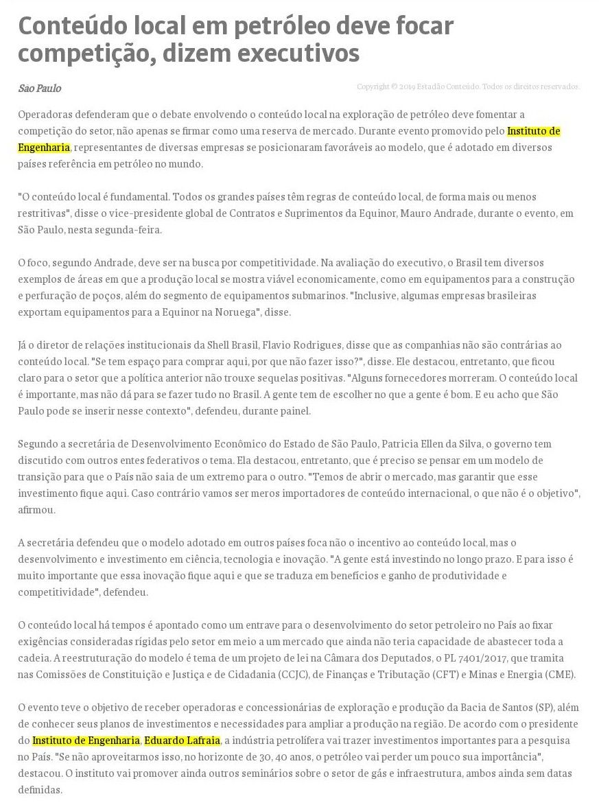 Esta é a sala de imprensa do Instituto de Engenharia. Aqui você encontra press releases sobre as novidades da marca, além dos principais resultados em veículos de comunicação e canais de influenciadores conquistados pela equipe de assessoria de imprensa da Trama Comunicação.