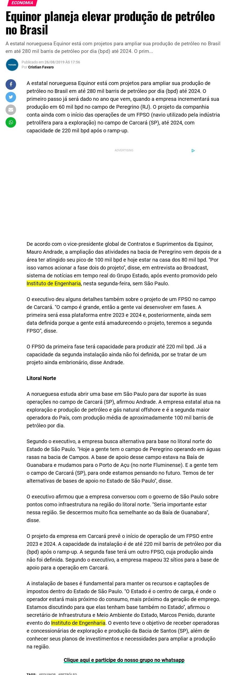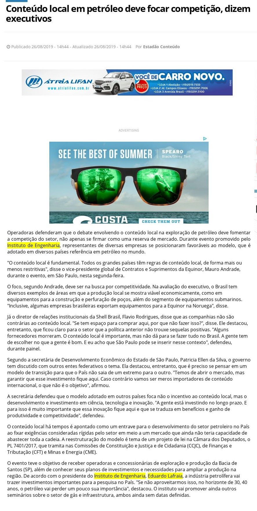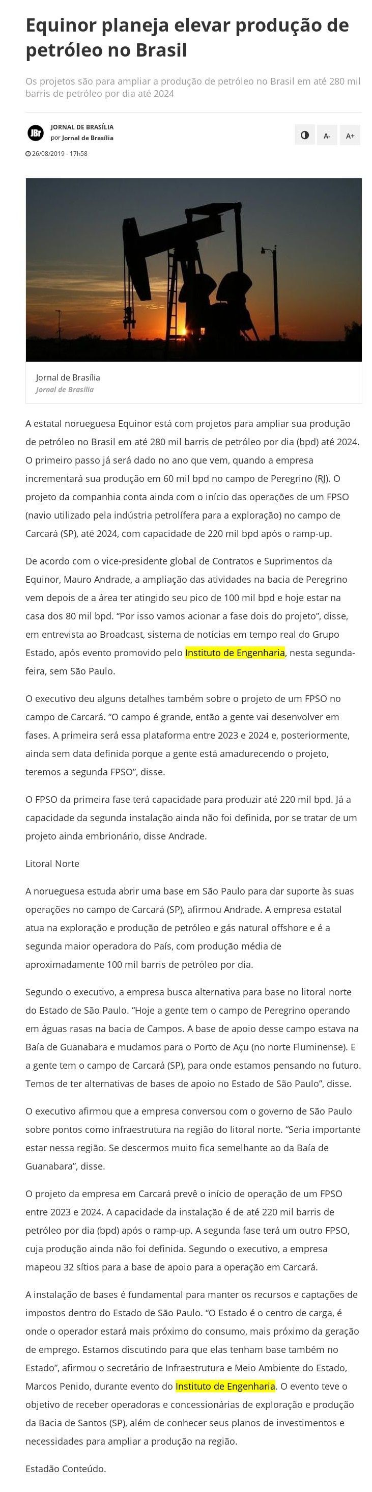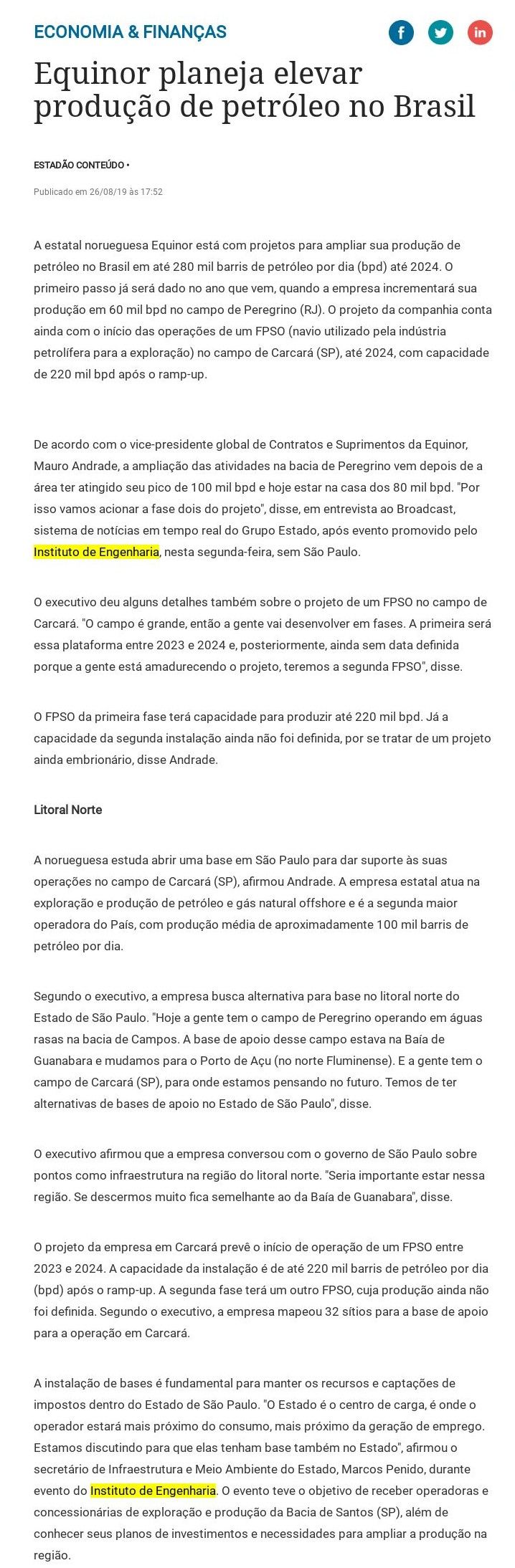 Esta é a sala de imprensa do Instituto de Engenharia. Aqui você encontra press releases sobre as novidades da marca, além dos principais resultados em veículos de comunicação e canais de influenciadores conquistados pela equipe de assessoria de imprensa da Trama Comunicação.