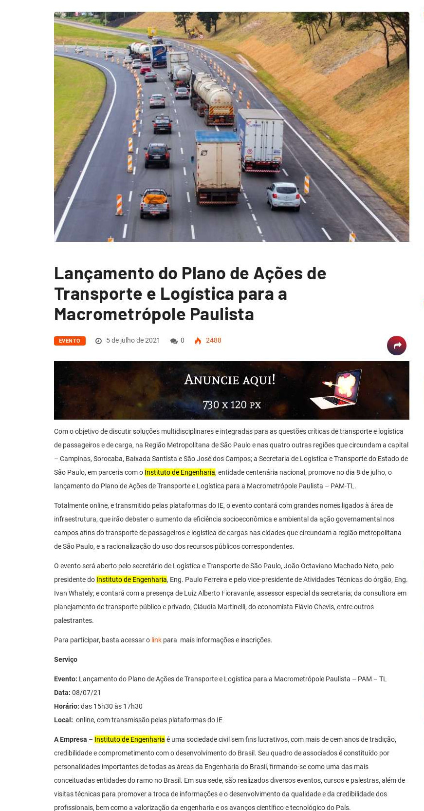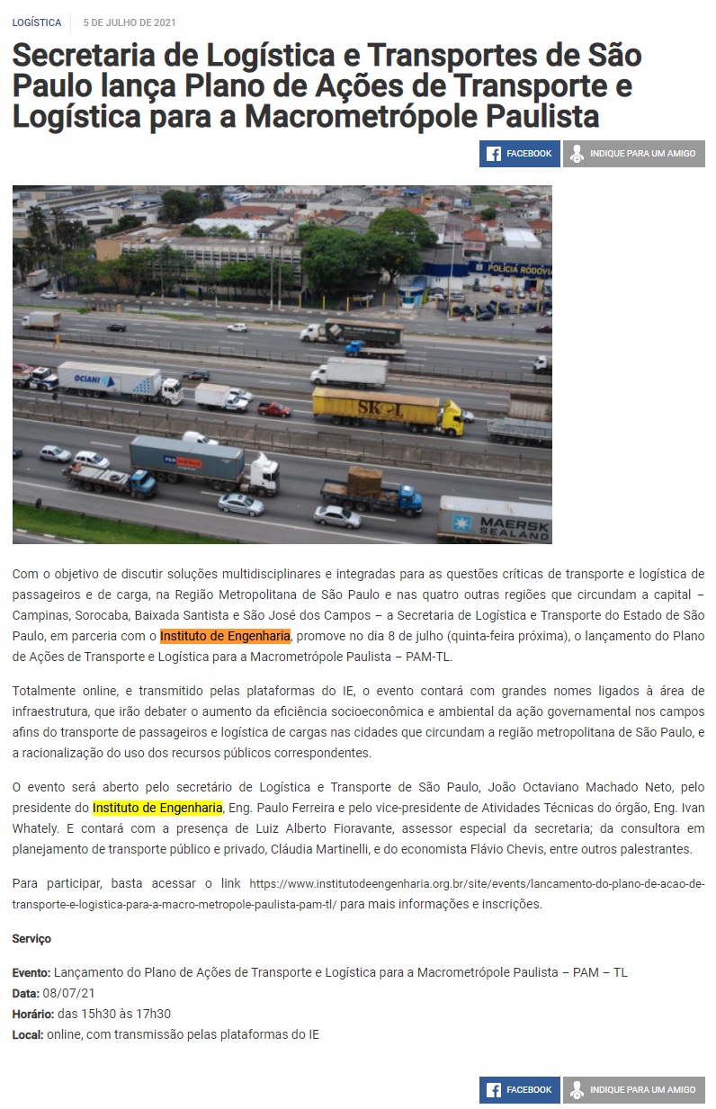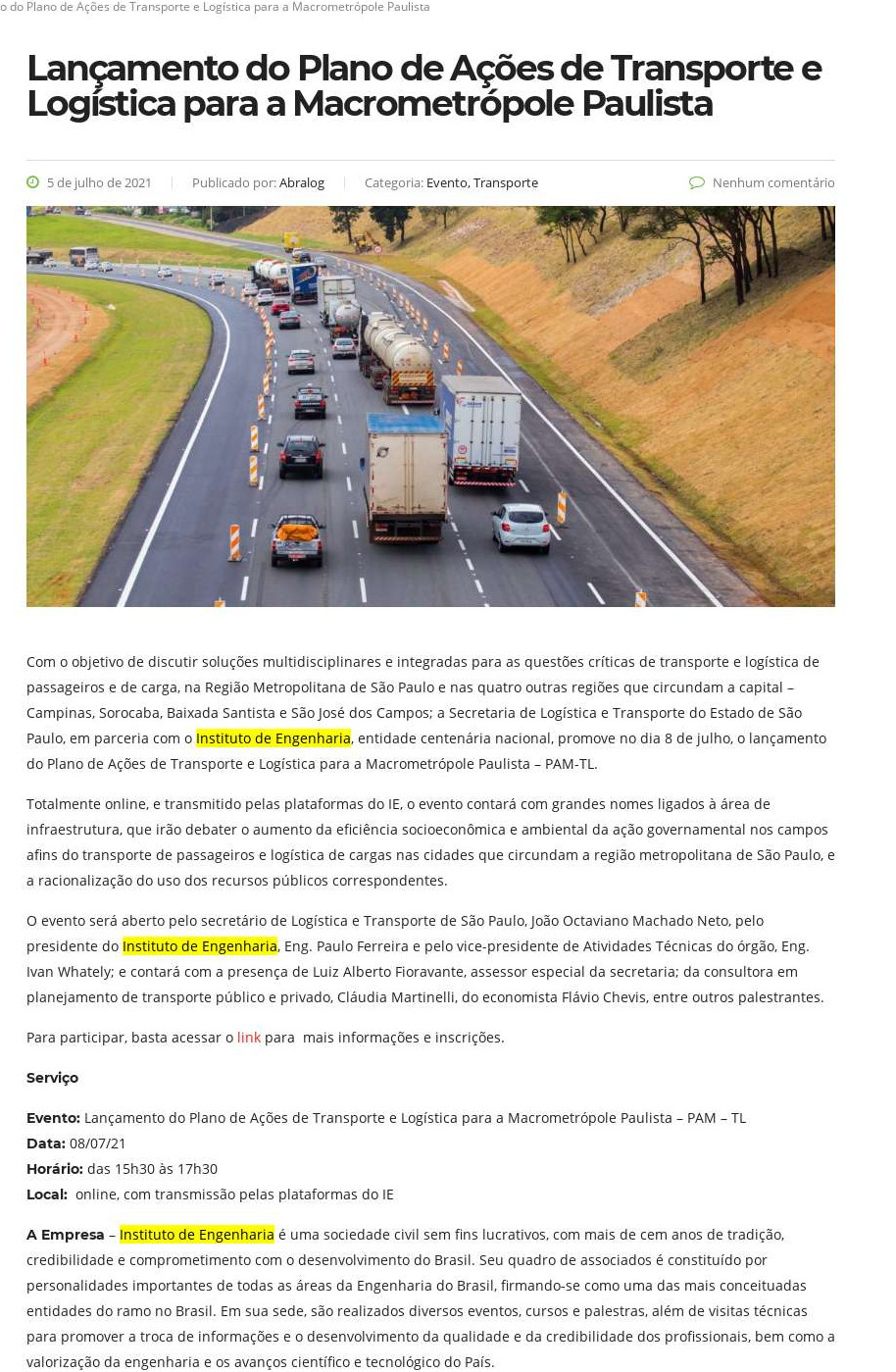 Esta é a sala de imprensa do Instituto de Engenharia. Aqui você encontra press releases sobre as novidades da marca, além dos principais resultados em veículos de comunicação e canais de influenciadores conquistados pela equipe de assessoria de imprensa da Trama Comunicação.