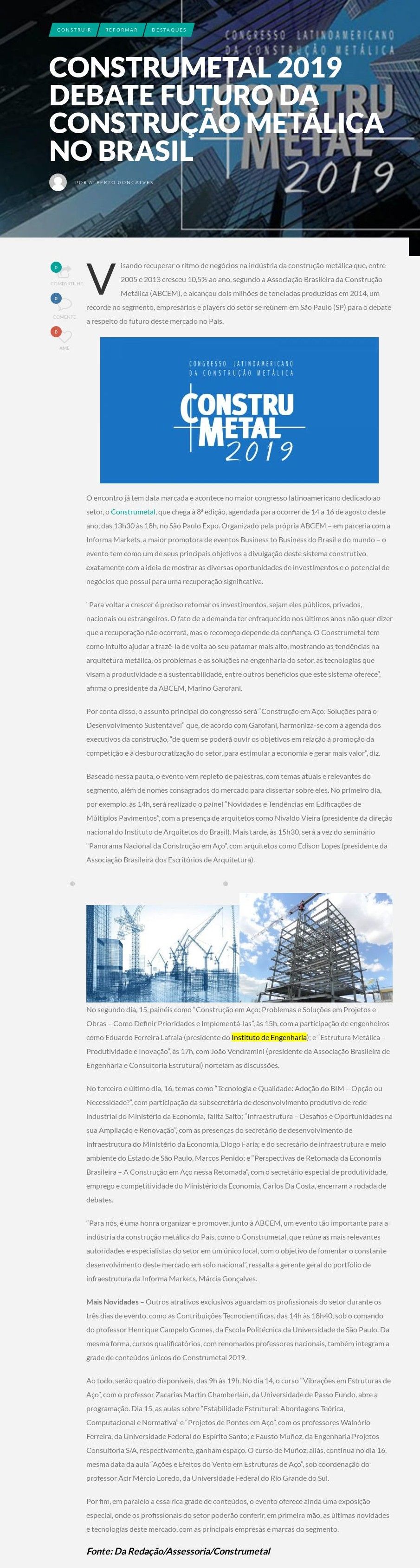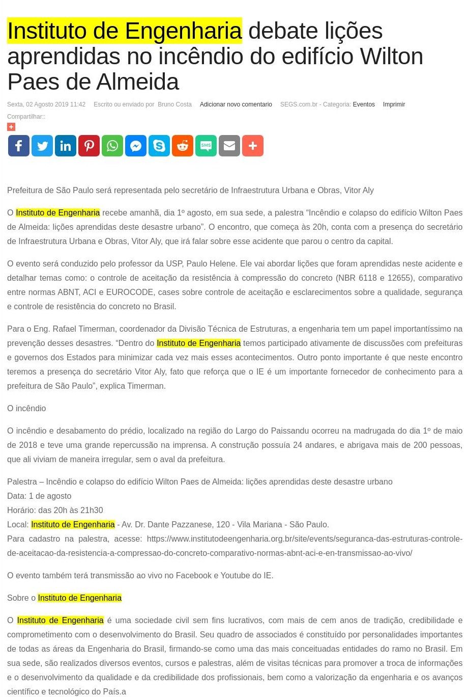 Esta é a sala de imprensa do Instituto de Engenharia. Aqui você encontra press releases sobre as novidades da marca, além dos principais resultados em veículos de comunicação e canais de influenciadores conquistados pela equipe de assessoria de imprensa da Trama Comunicação.