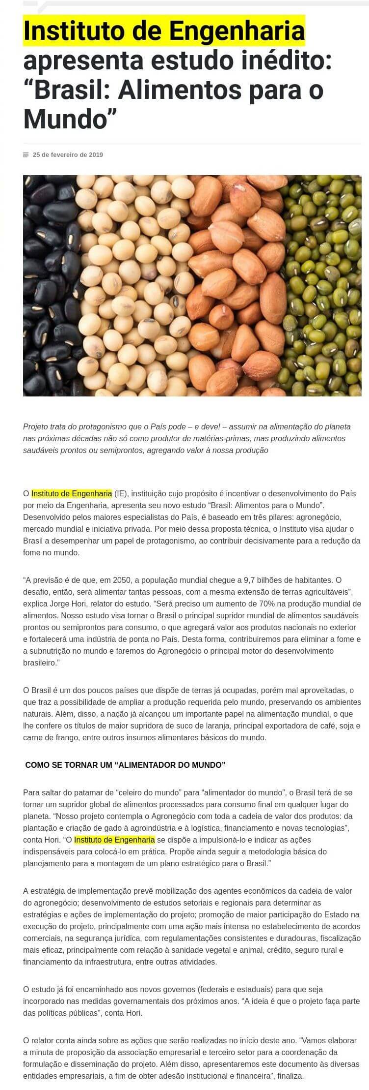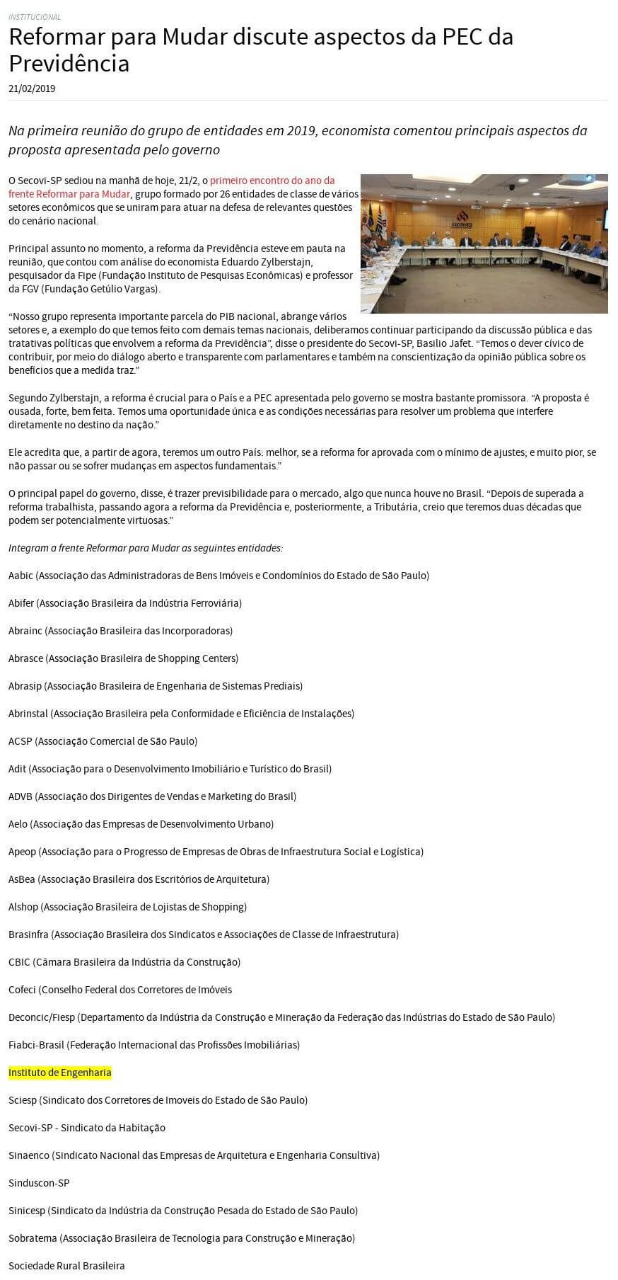 Esta é a sala de imprensa do Instituto de Engenharia. Aqui você encontra press releases sobre as novidades da marca, além dos principais resultados em veículos de comunicação e canais de influenciadores conquistados pela equipe de assessoria de imprensa da Trama Comunicação.