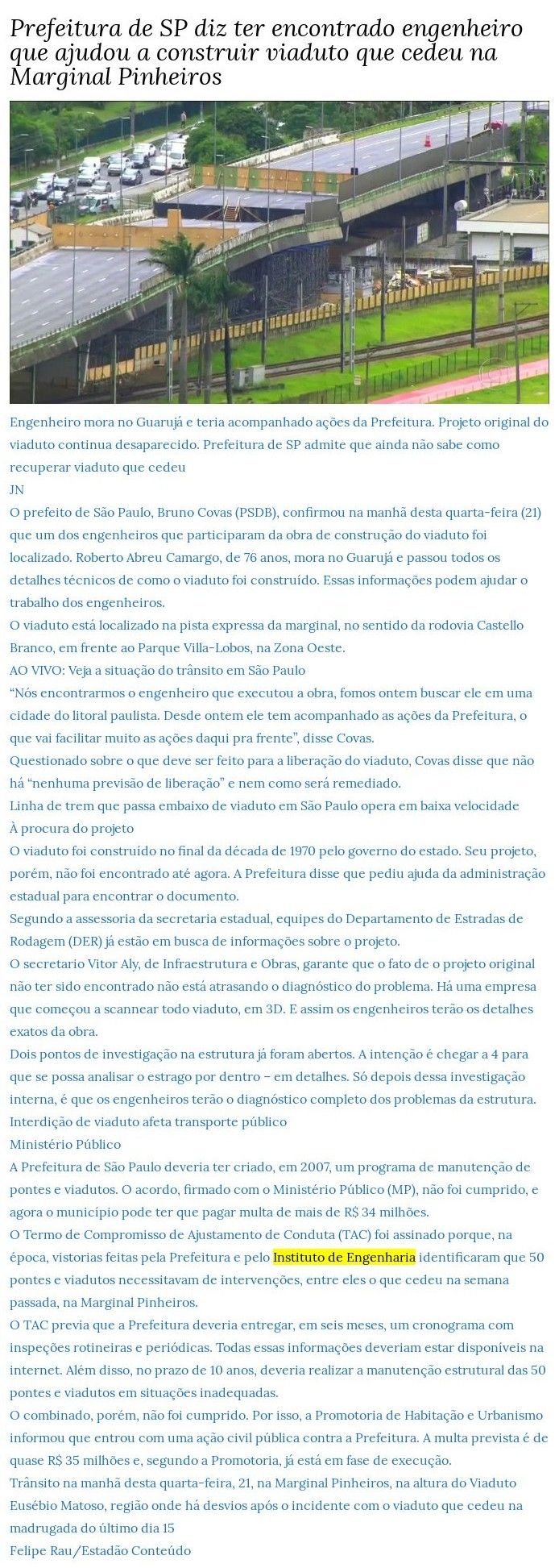 Esta é a sala de imprensa do Instituto de Engenharia. Aqui você encontra press releases sobre as novidades da marca, além dos principais resultados em veículos de comunicação e canais de influenciadores conquistados pela equipe de assessoria de imprensa da Trama Comunicação.