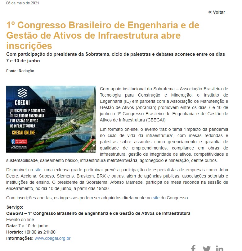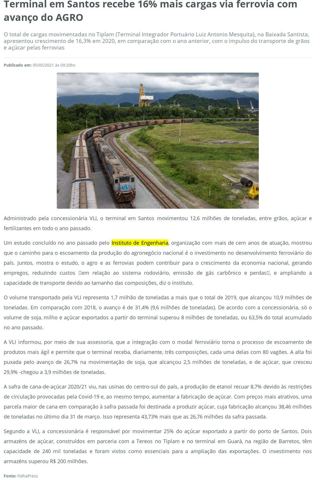 Esta é a sala de imprensa do Instituto de Engenharia. Aqui você encontra press releases sobre as novidades da marca, além dos principais resultados em veículos de comunicação e canais de influenciadores conquistados pela equipe de assessoria de imprensa da Trama Comunicação.