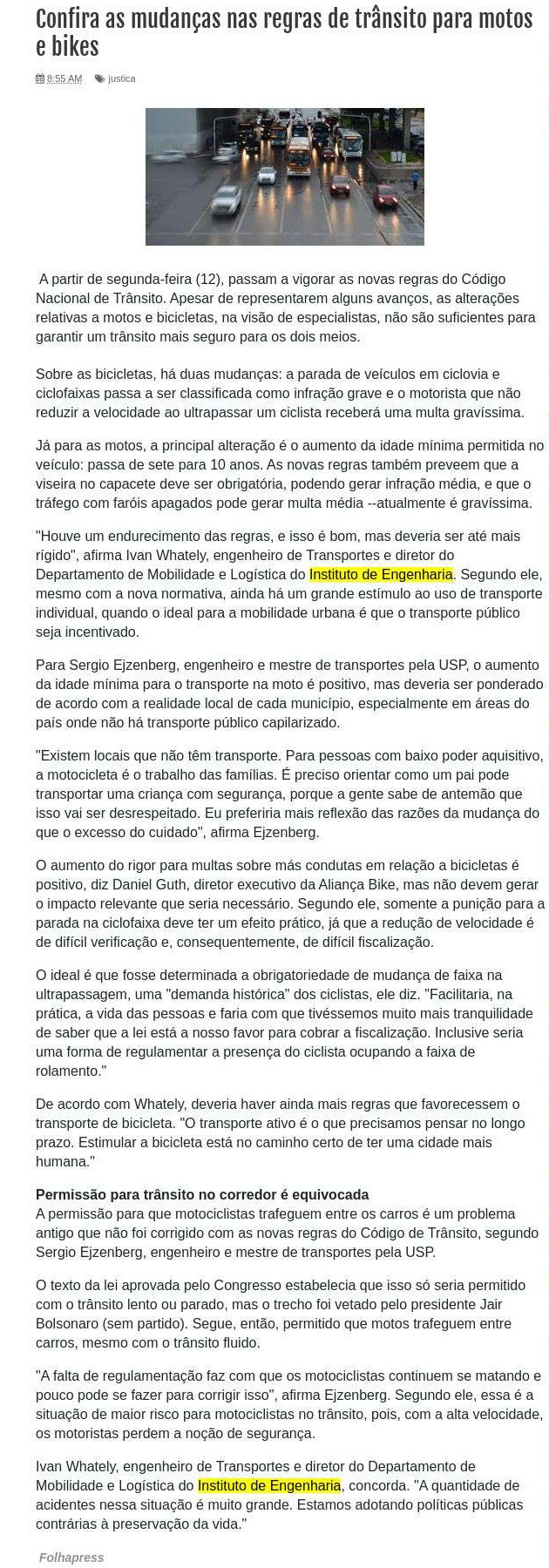 Esta é a sala de imprensa do Instituto de Engenharia. Aqui você encontra press releases sobre as novidades da marca, além dos principais resultados em veículos de comunicação e canais de influenciadores conquistados pela equipe de assessoria de imprensa da Trama Comunicação.