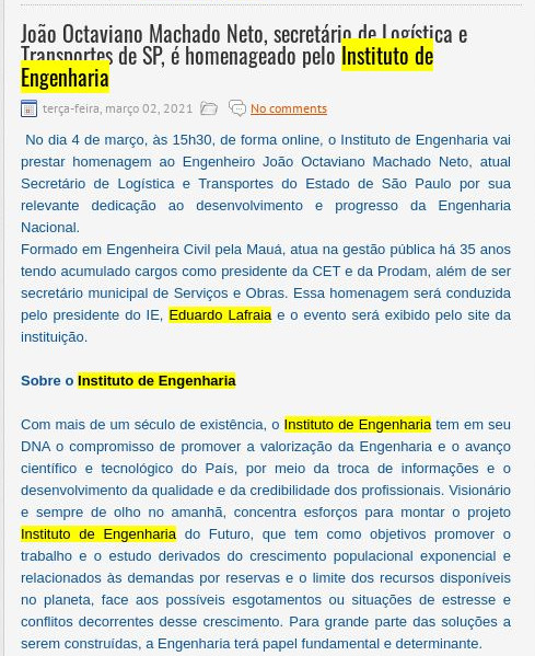 Esta é a sala de imprensa do Instituto de Engenharia. Aqui você encontra press releases sobre as novidades da marca, além dos principais resultados em veículos de comunicação e canais de influenciadores conquistados pela equipe de assessoria de imprensa da Trama Comunicação.