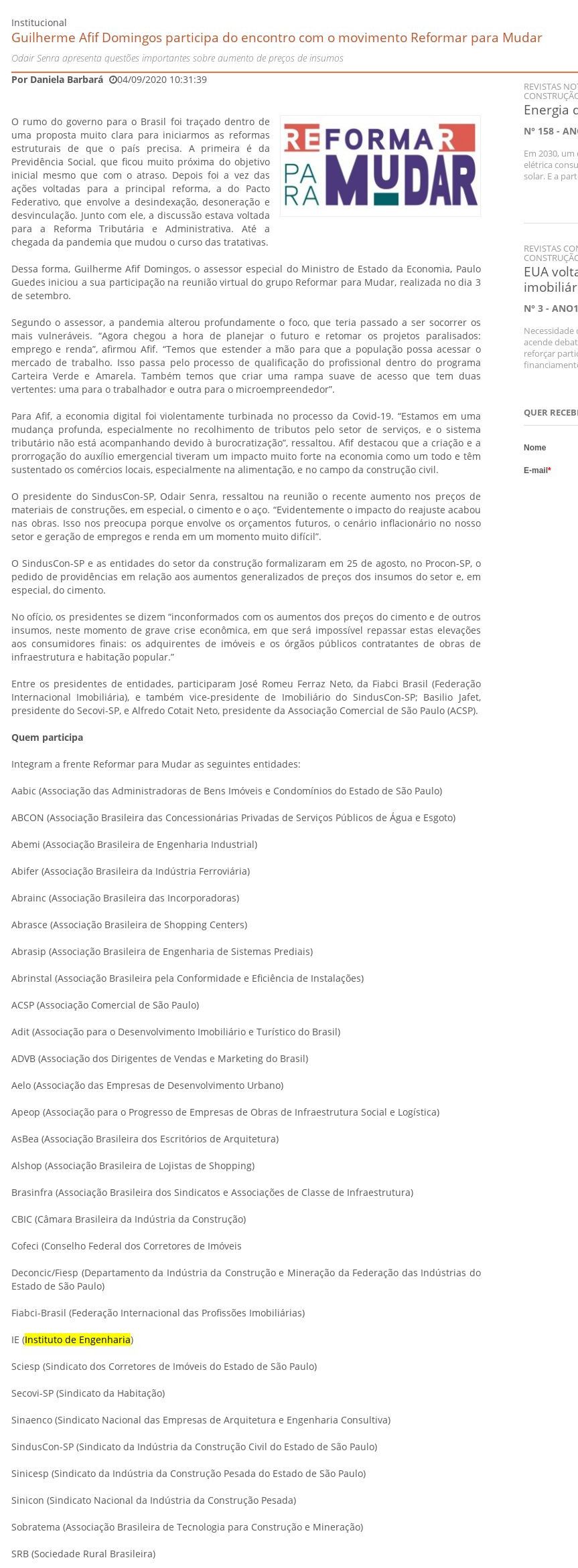 Esta é a sala de imprensa do Instituto de Engenharia. Aqui você encontra press releases sobre as novidades da marca, além dos principais resultados em veículos de comunicação e canais de influenciadores conquistados pela equipe de assessoria de imprensa da Trama Comunicação.