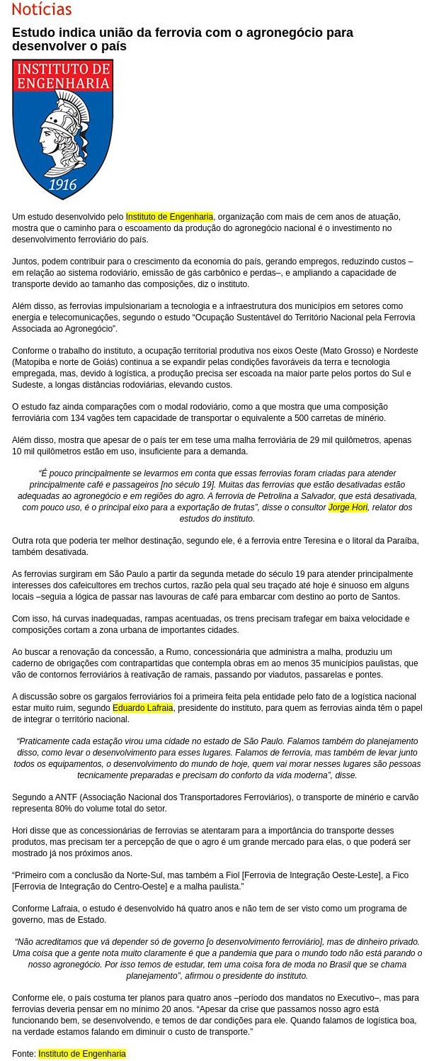 Esta é a sala de imprensa do Instituto de Engenharia. Aqui você encontra press releases sobre as novidades da marca, além dos principais resultados em veículos de comunicação e canais de influenciadores conquistados pela equipe de assessoria de imprensa da Trama Comunicação.
