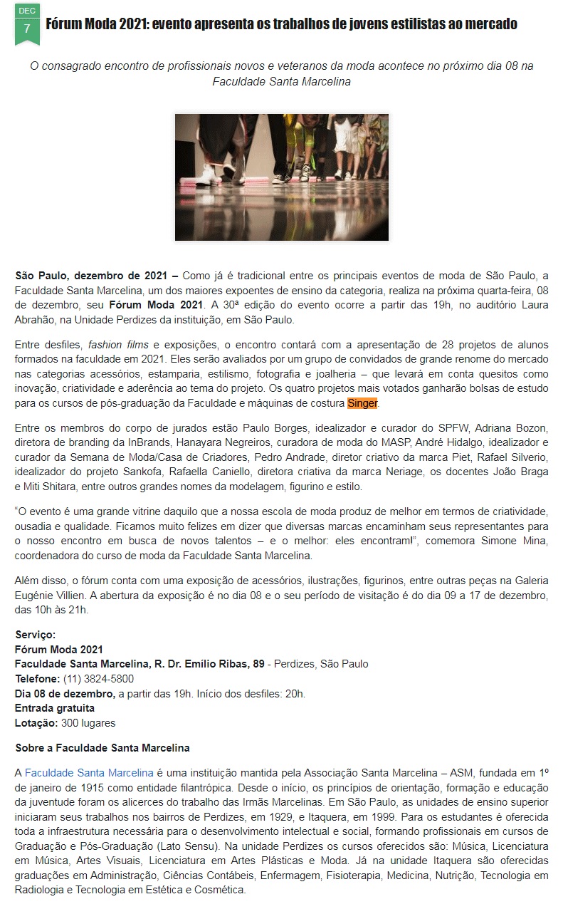Esta é a sala de imprensa da Singer. Aqui você encontra press releases sobre as novidades da marca, além dos principais resultados em veículos de comunicação conquistados pela equipe de assessoria de imprensa da Trama Comunicação.
