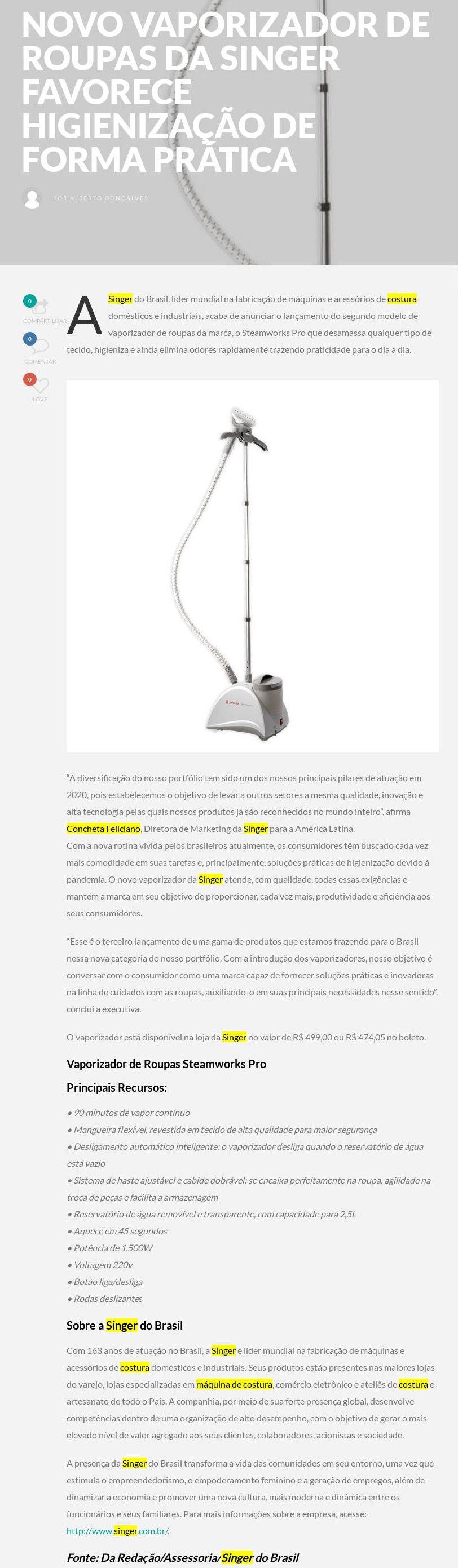 Esta é a sala de imprensa da Singer. Aqui você encontra press releases sobre as novidades da marca, além dos principais resultados em veículos de comunicação conquistados pela equipe de assessoria de imprensa da Trama Comunicação.