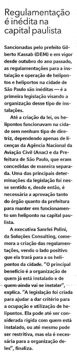 A Soluções Consultoria é a maior empresa brasileira com atuação especializada em regularização de imóveis, operando nas três esferas de poder: municípios, estados e União. A companhia oferece serviços especializados em documentação patrimonial e empresarial, assegurando uma gestão documental atualizada perante aos órgãos pertinentes as atividades de cada cliente. Com mais de dez anos e uma equipe formada por engenheiros, arquitetos, administradores de empresas e advogados, a Soluções Consultoria desenvolve projetos para os maiores grupos empresarias que atuam no País, entre eles o Citibank, Diversey, Fast Shop, Intermédica Saúde, Itaú-Unibanco, Magazine Luiza, Outback, Price, Redecard, Starbucks, Tok&Stok, entre outras, nas áreas de licenças ambientais, imóveis envolvidos com tombamentos históricos, obtenção de licenças na Anvisa (Agência Nacional de Vigilância Sanitária), legislação e documentação, acompanhamento para a obtenção do Auto de Vistoria e projetos no Contru (Departamento de controle do Uso de Imóveis).