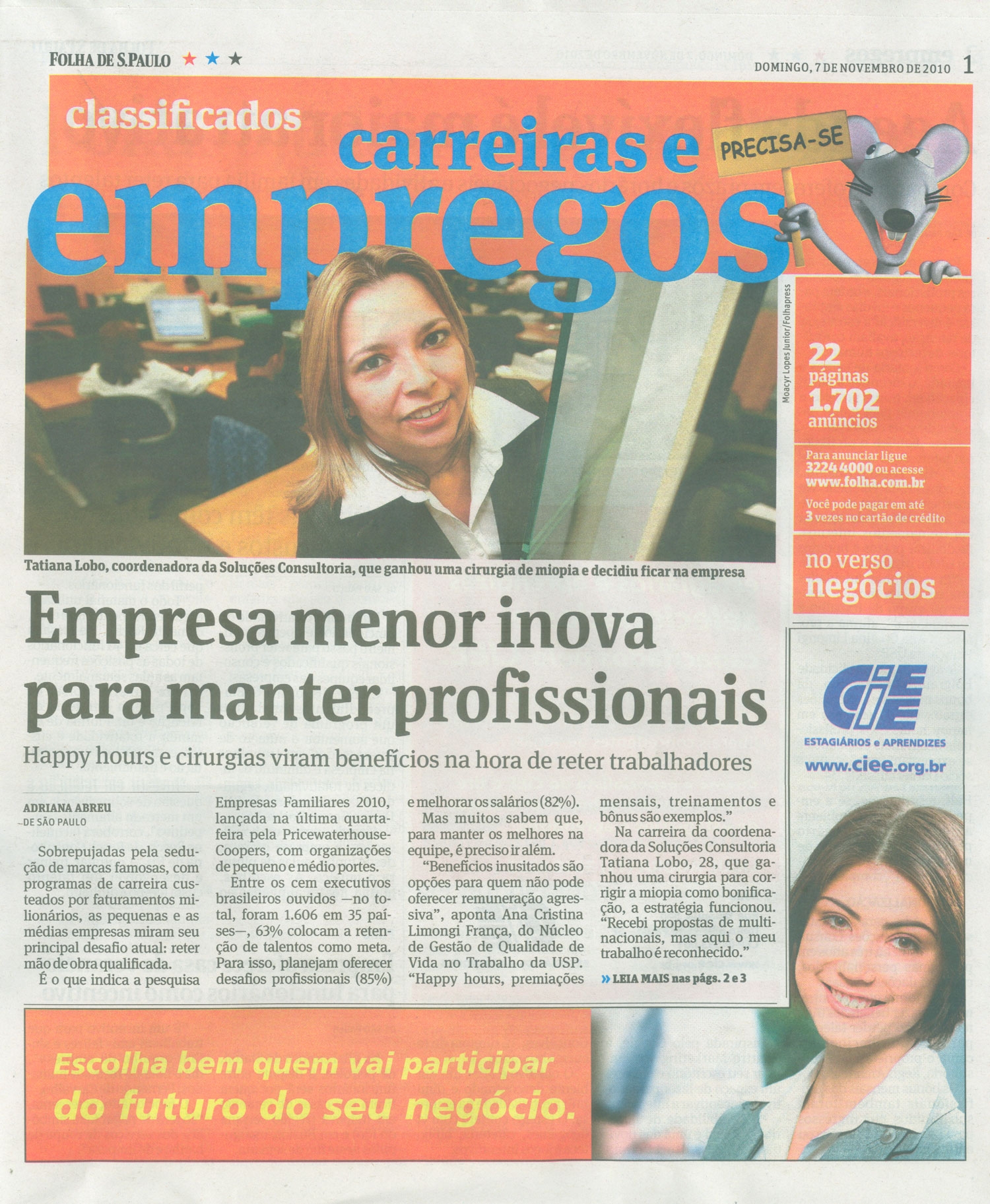 Cultura e CarreiraDeseja trabalhar conosco? Envie seu currículo!